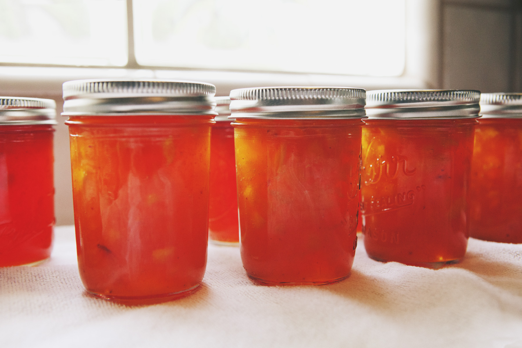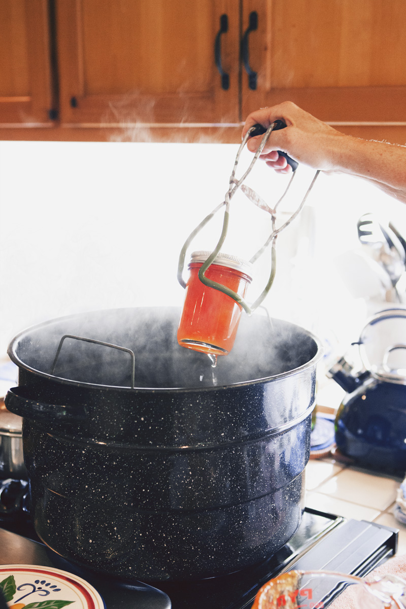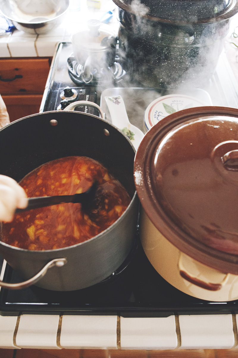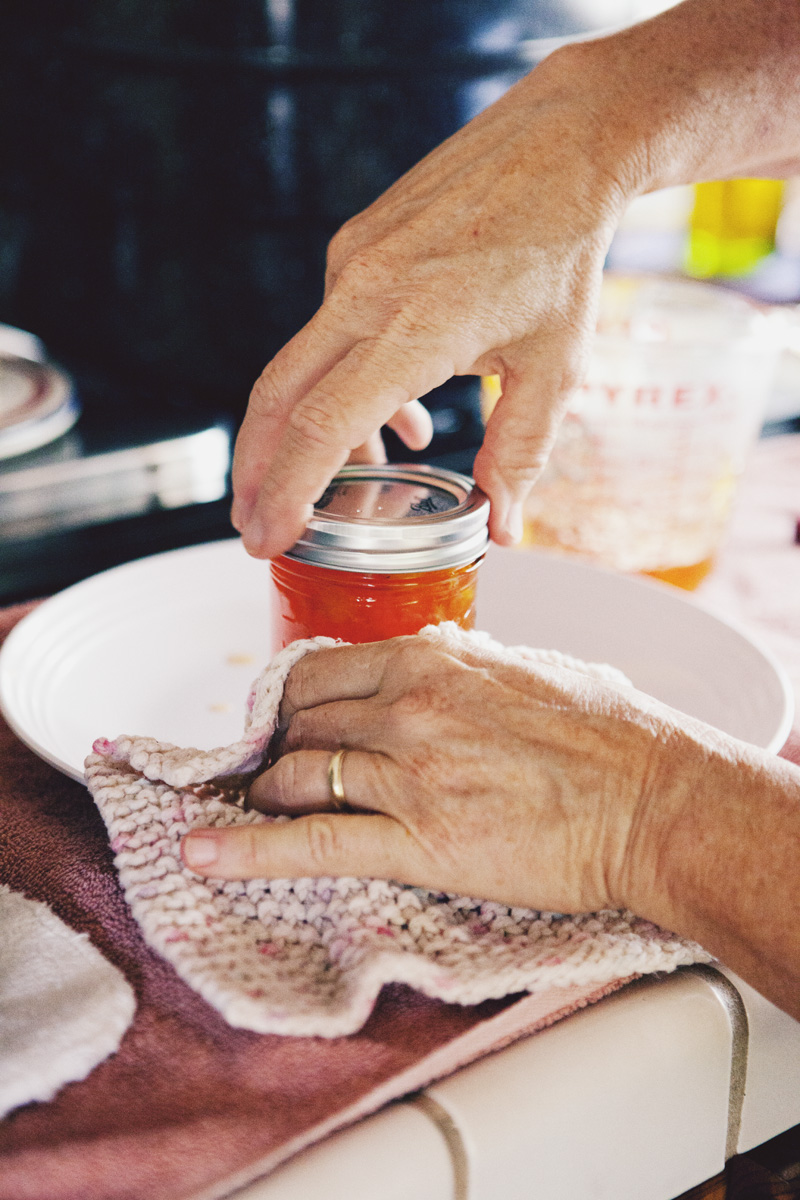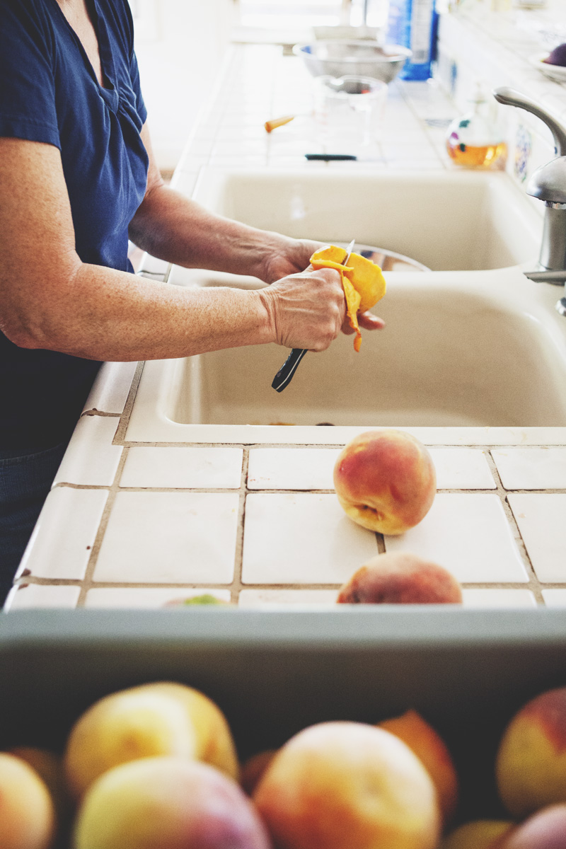 A few times a year my aunt can be found in her kitchen, canning or preserving one thing or another. A history buff and a journalist, she possesses a wealth of knowledge and stories she loves to pass along. As she walks me through the process of making peach jam, she recalls memories of her grandmother’s pantry stocked high with canned fruits, jams, and pickled vegetables. She tells me she learned to can to feel closer to her grandmother. I can’t help but feel closer to my aunt as, one by one, the jam jars seal themselves with a faint *pop* and we share the joy of knowing we’ve had a successful day in the kitchen.